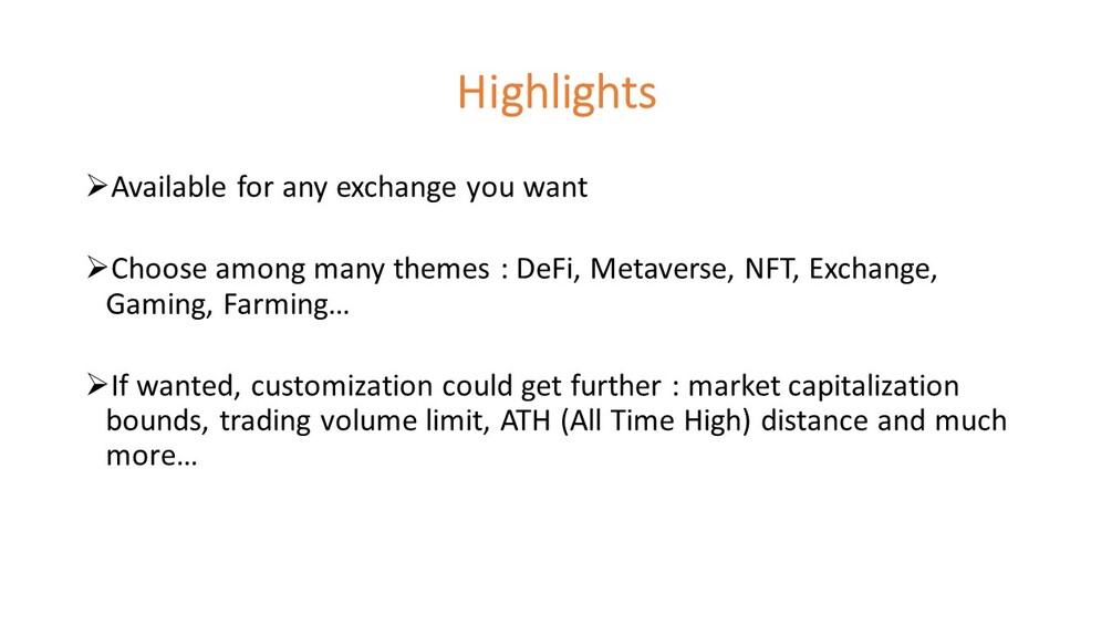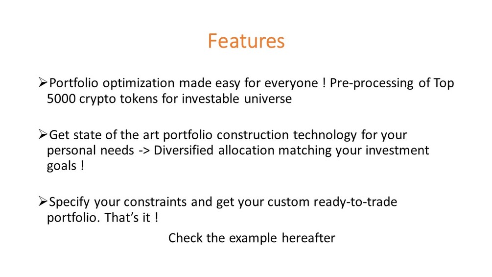 Do you want to invest in Metaverse ? DeFi ? NFT ? and more but does not know how much to invest in each theme to get a diversified portfolio, here is your solution : I will optimize a basket of crypto assets according to your constraints using state of the art machine learning algorithms for you !
